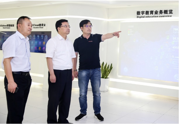 王少峰詳細了解了天聞數媒發展歷程及數字教育解決方案,包括ECO云開放平臺、AiCloud教育云、AiSchool智慧校園、AiClass云課堂等。此外,由天聞數媒承建的心聲·音頻館、邊疆文化長廊等項目以及天聞數媒統籌執行的國內首個綜合性教育援外項目,都讓王少峰頻頻點贊。
