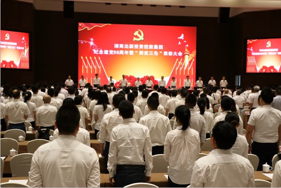 7月2日,湖南出版投資控股集團(tuán)紀(jì)念建黨98周年暨“兩優(yōu)三先”表彰大會(huì),全體人員齊唱國(guó)歌。