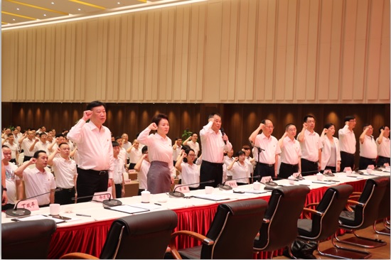 7月2日,湖南出版投資控股集團(tuán)紀(jì)念建黨98周年暨“兩優(yōu)三先”表彰大會(huì),全體人員重溫入黨誓言。