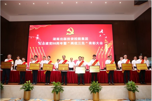 7月2日,湖南出版投資控股集團(tuán)紀(jì)念建黨98周年暨“兩優(yōu)三先”表彰大會(huì),先進(jìn)基層黨組織上臺(tái)領(lǐng)獎(jiǎng)。
